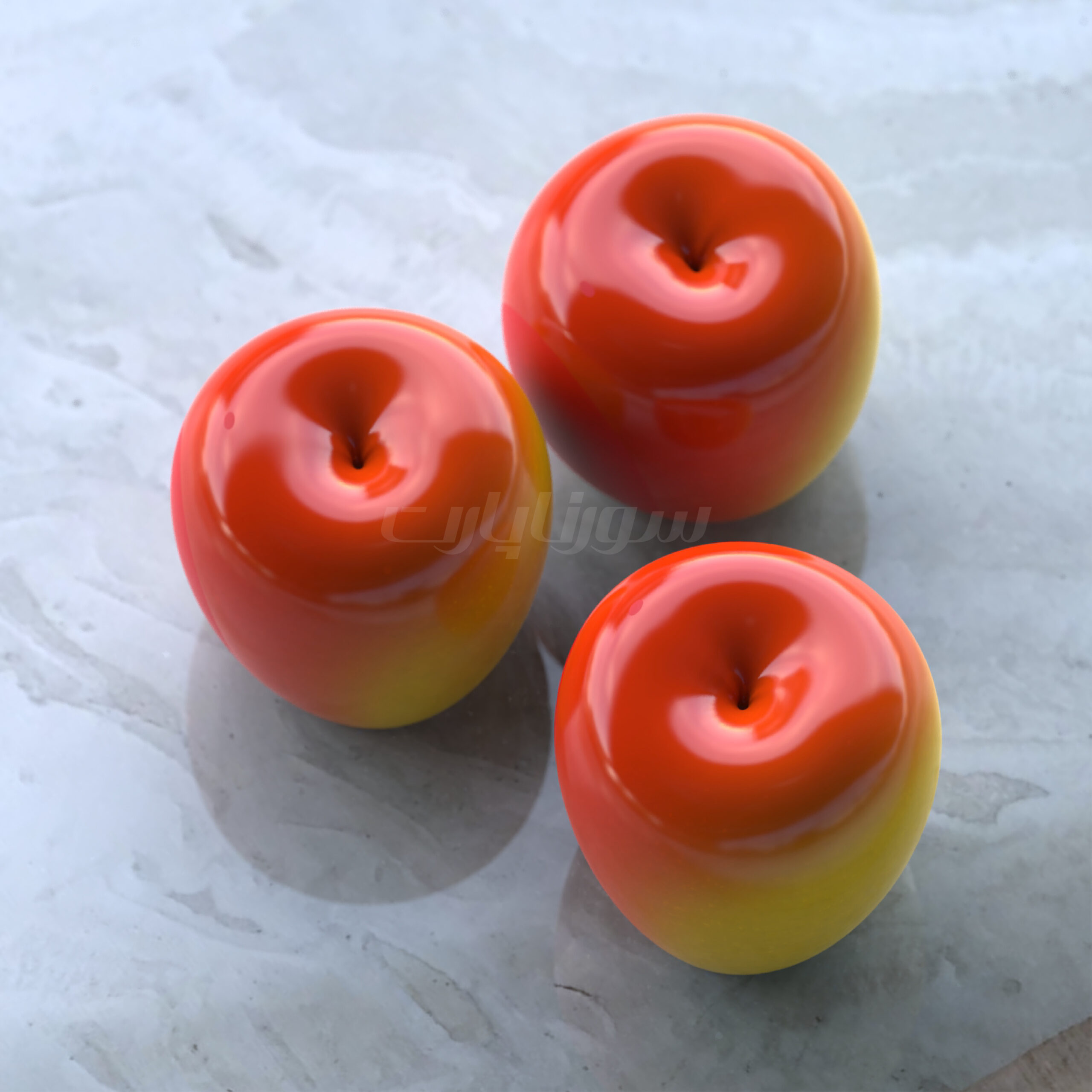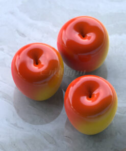 دسری براق، خوشرنگ، با خطوط و برجستگیهای طبیعی که شبیه یک میوه کوچک واقعی روی میز میدرخشد.